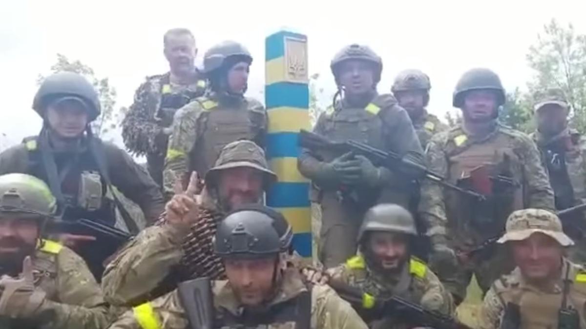 «Господин президент, верховный главнокомандующий ВСУ! Докладываю! Сегодня, 15 мая, 227-й батальон 127-й бригады ТРО вышел на границу с Российской Федерацией, со страной-оккупантом. Мы дошли, господин президент! Мы здесь. Вот с нами пограничник. Передаем ему знак 910/1. Господин президент, мы дошли, мы на границе!», — говорит один из солдат на видео, опубликованном министерством.