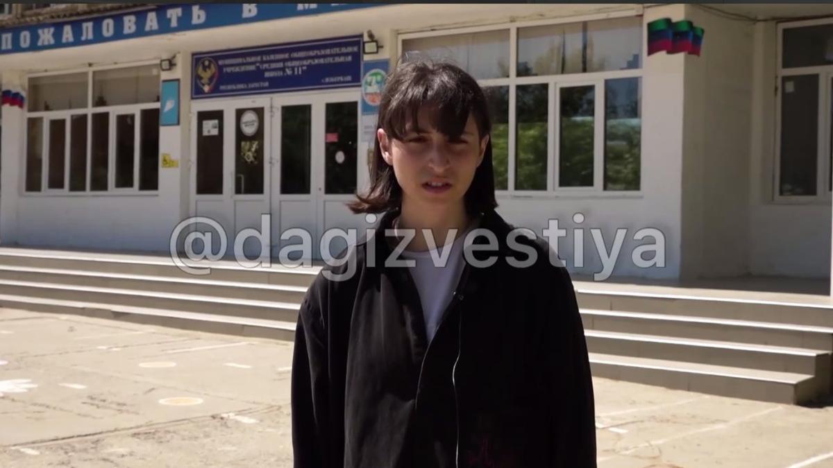 Телеграм-канал «Дагестанские иzвестия» опубликовал видео с извинениями ученицы 11 класса Зухры Алибековой, которая на торжественной линейке сказала: «Нет войне! Свободу Украине! Путин черт!».