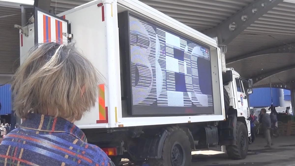 ТАСС называет автомобили со встроенными экранами «мобильными комплексами информирования населения». По данным агентства, в городе сейчас курсируют два таких комплекса, еще один установлен стационарно.