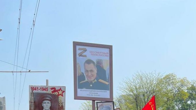 Yevgeny Poddubny, a reporter working for the Russian state TV, wrote earlier that Ivanov was killed while “fighting Ukrainian Nazis”. Poddubny carried his portrait during an Immortal Regiment march on 9 May. The Immortal Regiment is an annual event during which people march across their city carrying portraits of relatives who fought in WWII.