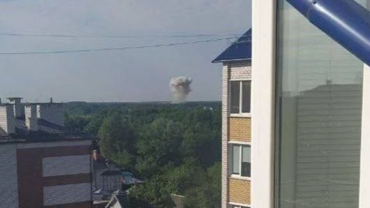 A few videos shot in Klintsy were published in a local Telegram channel before. The videos show funnels of smoke over the explosion site and several helicopters circling around the town. A shell allegedly hit the local military base.