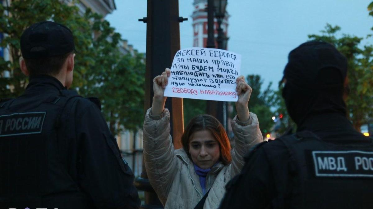 В Петербурге задержали активистку Кристину Рамирес Джонсон, которая вышла с плакатом в поддержку Навального