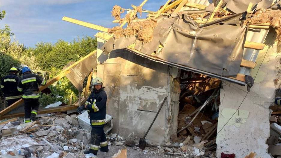 В результате обстрела были полностью разрушены три частных дома, еще около 10 зданий повреждены. Спасатели сейчас разбирают завалы.