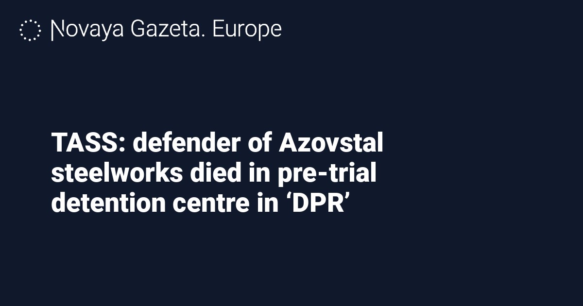 One of the soldiers defending Azovstal steelworks in Mariupol died in a pre-trial detention centre in the Donetsk “people’s republic”. He was placed there after his surrender, reports Russian state news agency TASS, citing a source in law enforcement.