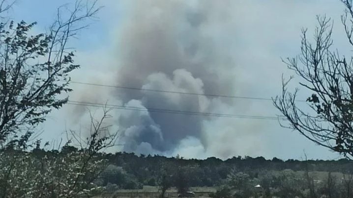 Novofedorivka is located about 12 miles away from Yevpatoria. The Saki military base is located in the village. Several explosions rocked the air base yesterday afternoon.