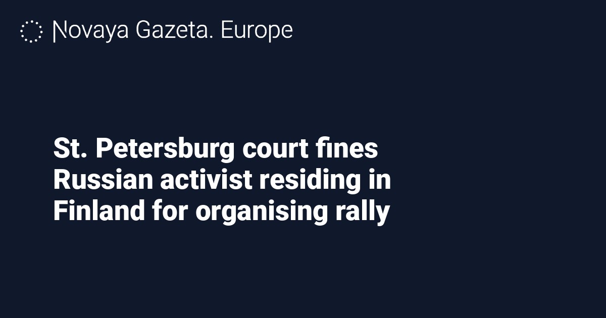 A St. Petersburg court has slapped a fine of 20,000 rubles (330 euros) on Russian activist Petr Trofimov, a Finnish resident since 2019, for organizing an unauthorized rally, the Pervy Otdel legal group reports.