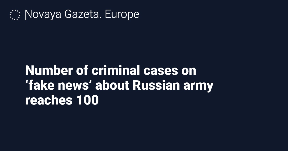 Starting from 4 March, 100 criminal cases on “fake news” about the Russian army have been opened in Russia, head of the Agora human rights group Pavel Chikov shared in a post on his Telegram channel.
