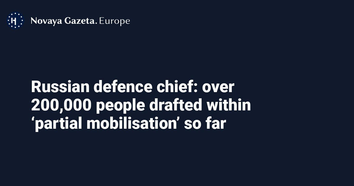 Over 200,000 people have been drafted into the Russian armed forces during the “partial mobilisation” so far, Russian Defence Minister Sergei Shoigu stated, quoted by state news agency TASS.