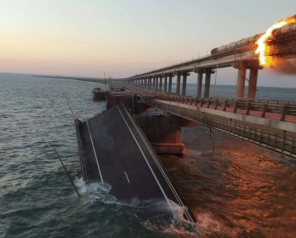 Earlier today, an explosion occurred on the Kerch Bridge. At the time of the explosion, a goods train carrying flammable materials was passing over the bridge. It caught fire. The arches of the bridge are undamaged.