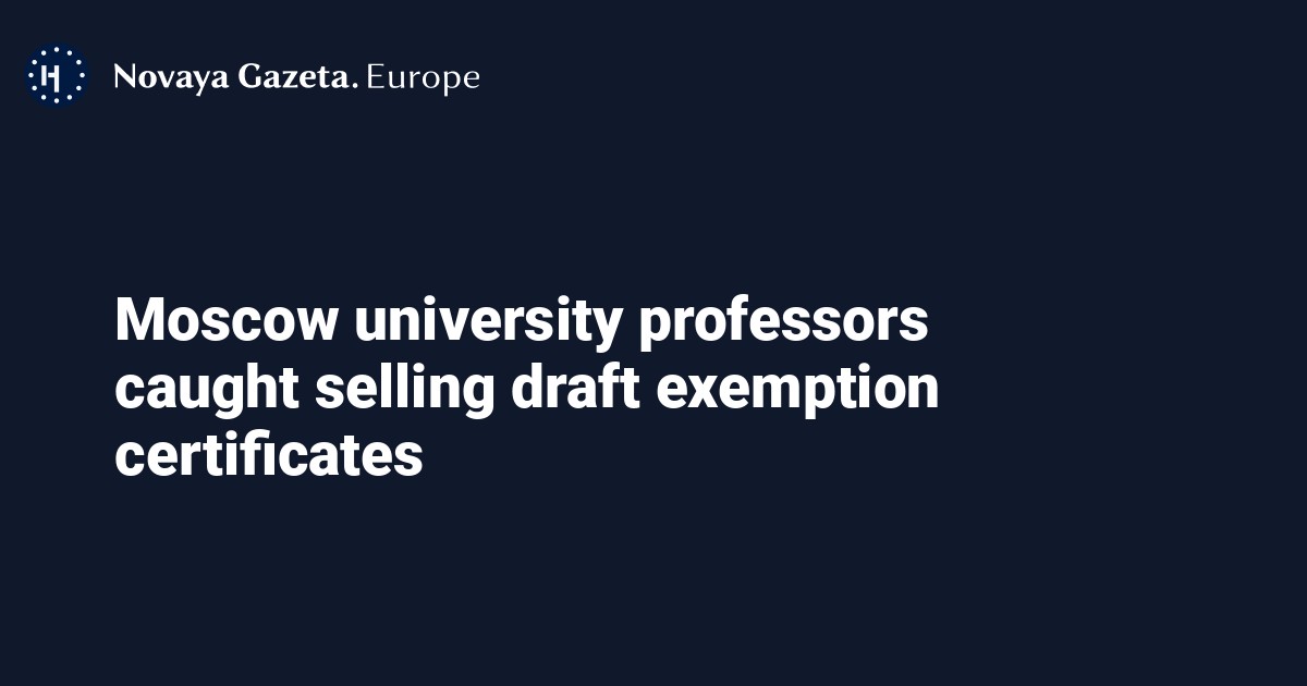 Professors of Moscow’s Synergy University have been caught selling draft exemption certificates to men evading mobilisation, Russian state news agency RIA Novosti reports, citing the university’s press service. This information was also reported by the Moscow Municipal News Agency, which cited police sources, and Kommersant newspaper, which quoted the prosecutor general’s office.