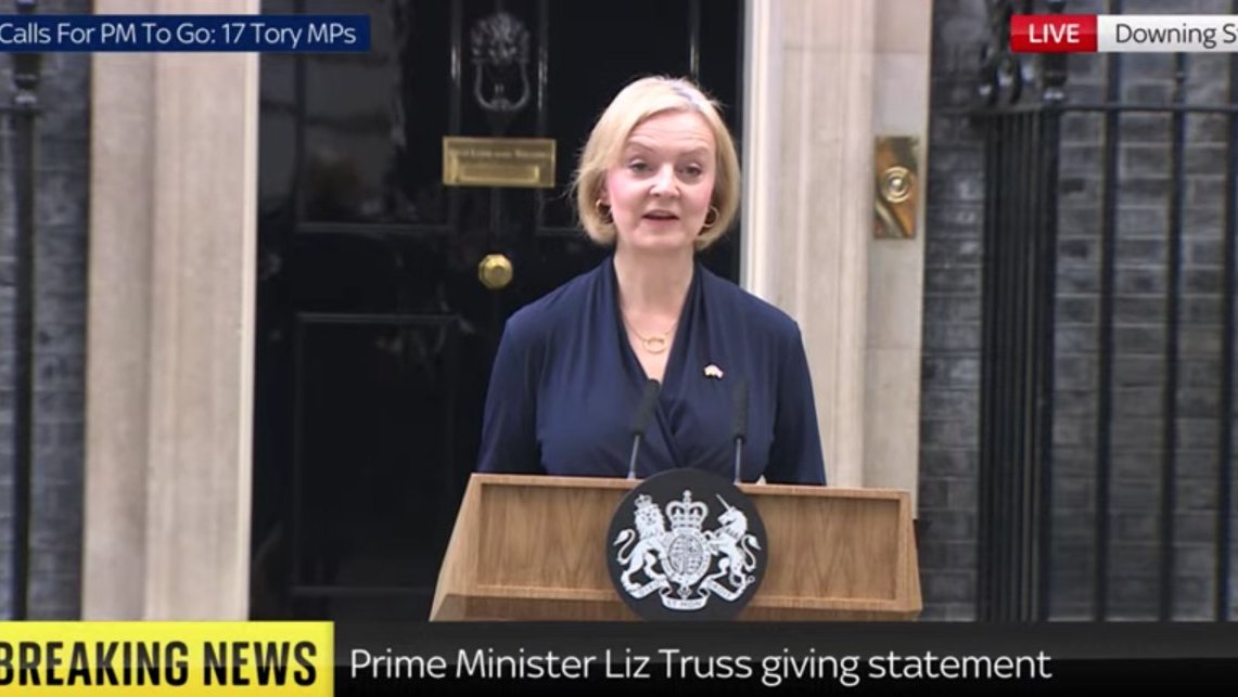 Премьер-министр Великобритании и лидер Консервативной партии Лиз Трасс объявила об уходе в отставку. Трансляцию ее речи ведет телеканал Sky News.