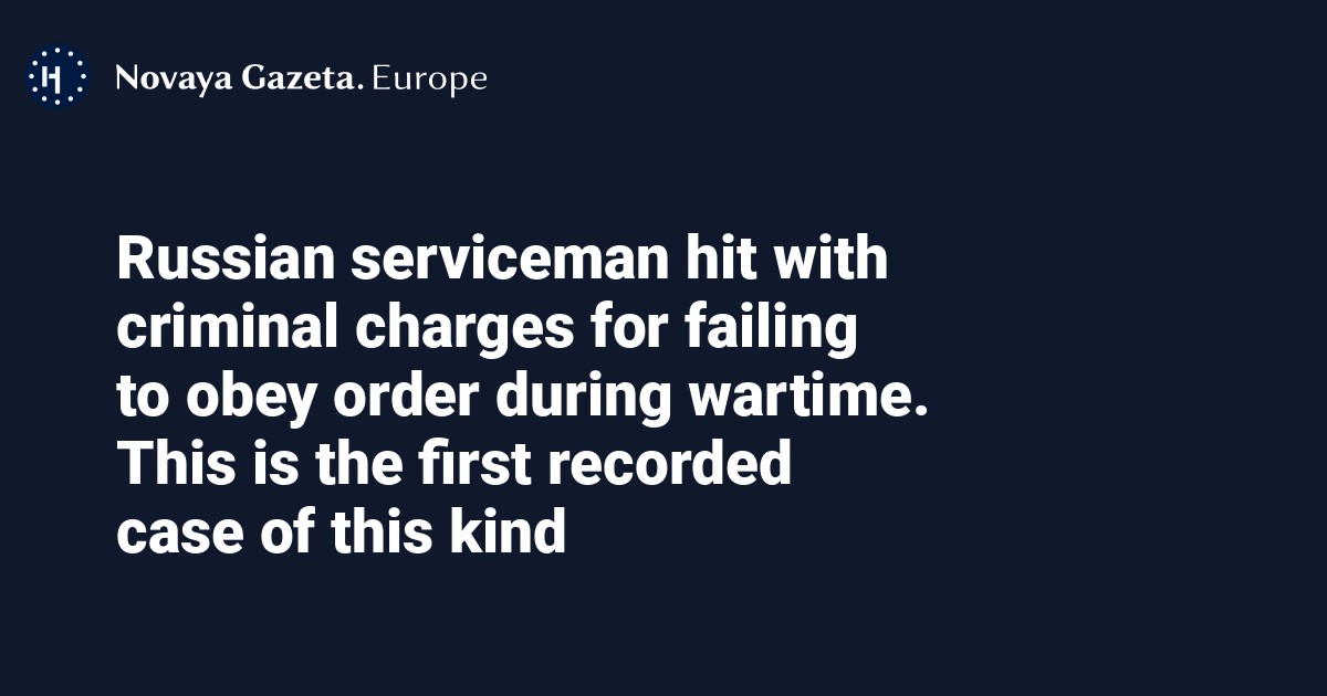 A regional military investigation department of the Russian Investigative Committee has initiated criminal proceedings against a contract serviceman for failing to obey an order during wartime, head of the Agora human rights group Pavel Chikov said on his Telegram channel.