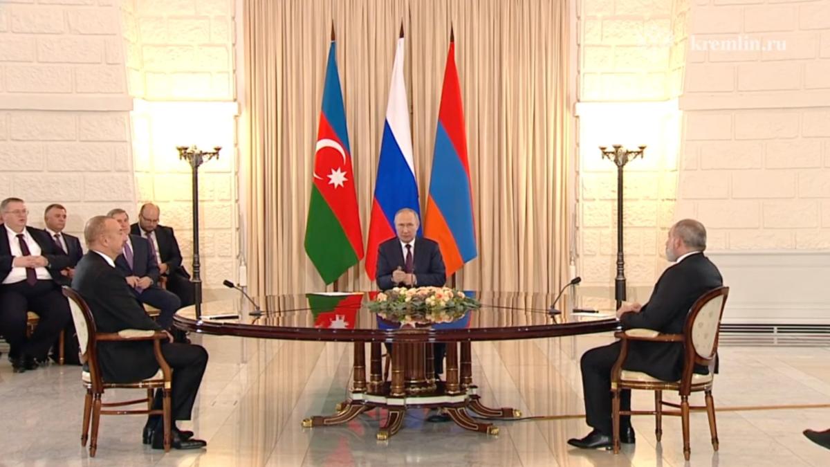 Президент Азербайджана Ильхам Алиев, премьер-министр Армении Никол Пашинян и президент России Владимир Путин выпустили совместное заявление по итогам трехсторонней встречи в Сочи. Оно опубликовано на сайте Кремля.