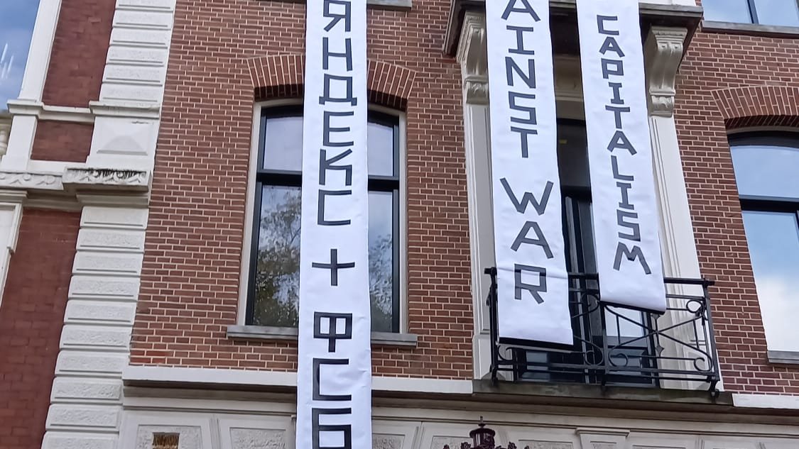 Фото: плакаты, вывешенные на здании после захвата сквоттерами/соцсети