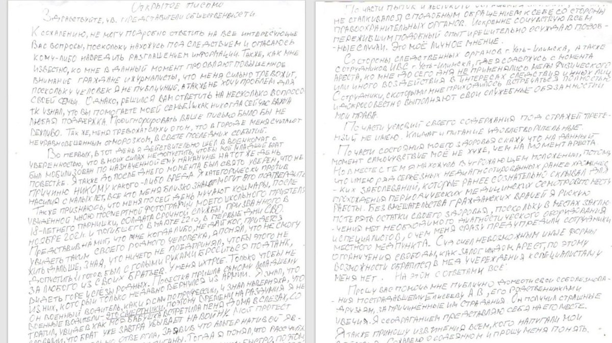 «В тот день [26 сентября] я действительно шел в военкомат с уверенностью, что в моих силах не допустить, чтобы мой младший брат был мобилизован по назначенной ему накануне на тот же день повестке. Я также до последнего момента был свято уверен, что не причиню никому какого-либо вреда. Я категорически против насилия с малых лет, все кто меня близко знают, могут это подтвердить», — говорится в письме.