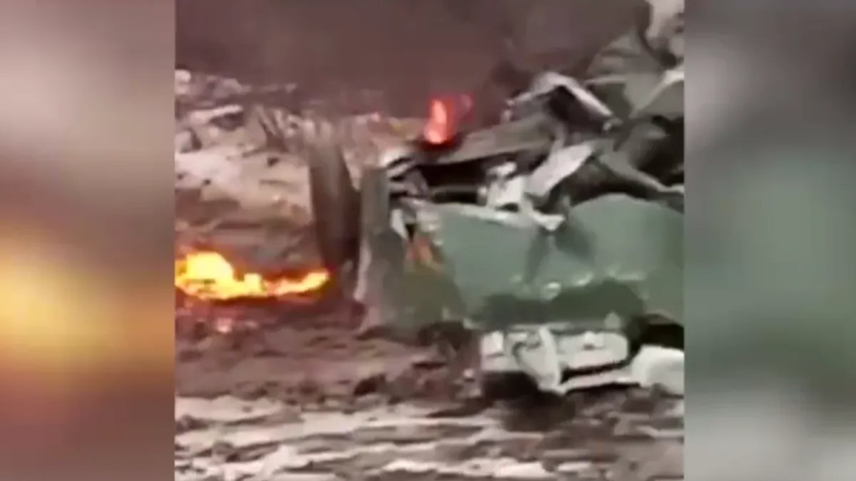 Videos showing burning metal debris and smoke coming from the residential area previously appeared online.
