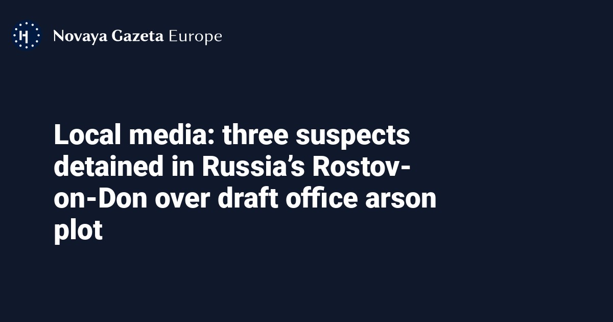 Three people suspected of planning to set a draft office on fire have been detained in Russia’s Rostov-on-Don, 161.RU local media outlet reports, citing a law enforcement source.