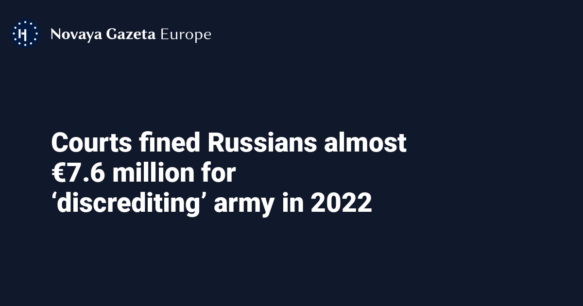 Russian courts heard 5,622 administrative cases for “army discreditation” in 2022, Mediazona reports.