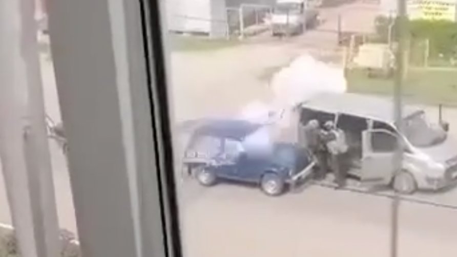 На видео, распространившемся в соцсетях, можно увидеть, что автомобиль взорвался в тот момент, когда к нему начали подбегать сотрудники ОМОН.