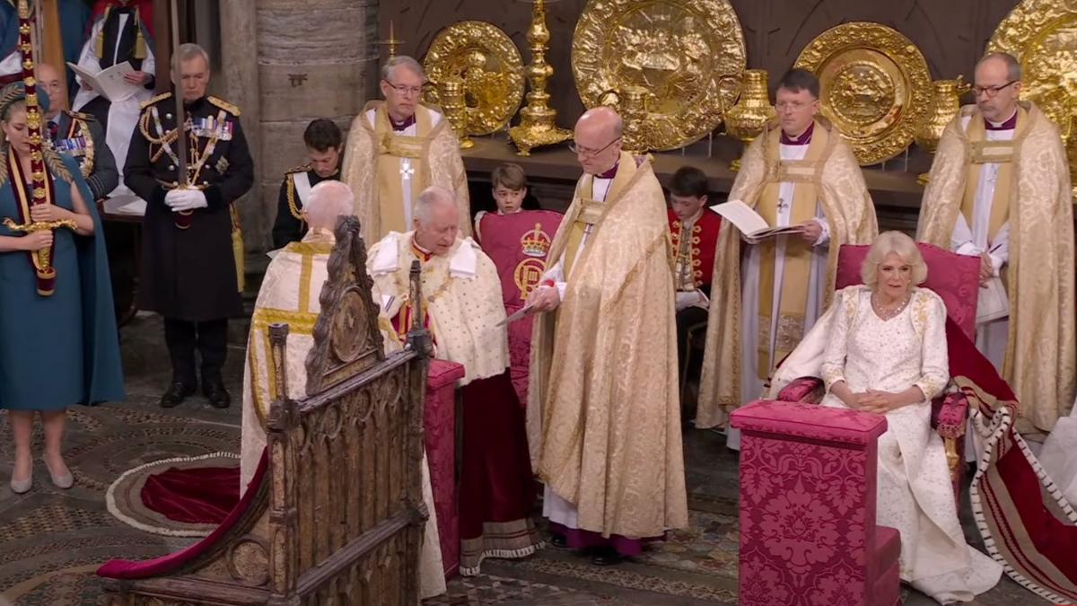 После клятвы на верность жену Карла III королеву-консорт Камиллу также помазали, короновали и возвели на престол.