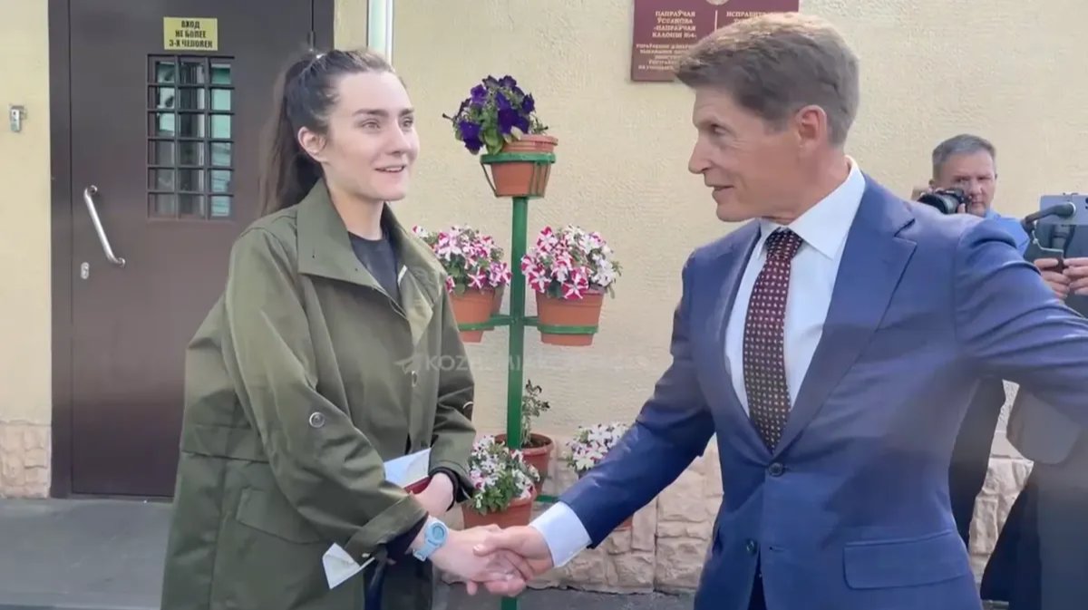 The pardoned woman was handed over to the Primorsky region of Russia delegation led by the governor Oleg Kozhemyako, according to BelTA.
