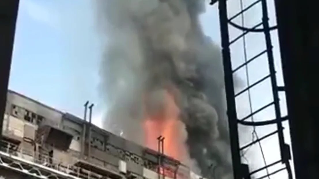 A local media outlet says, quoting a security agency source, that the fire was caused by an explosion of unspecified nature, and that three people were injured. No critical damage was inflicted to the power plant, the source says.