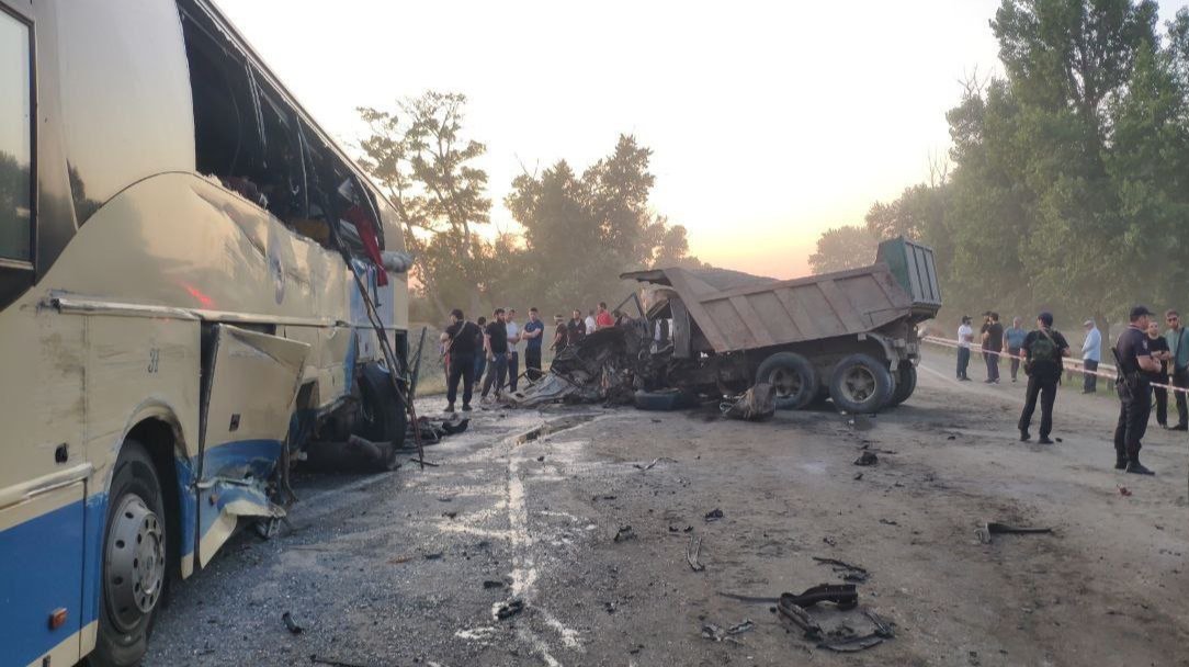 Baza утверждает, что среди погибших двое детей. По данным телеграм-канала, «Тойота Камри» вылетела на встречную полосу, столкнулась с «Камазом», а затем грузовик врезался в автобус.