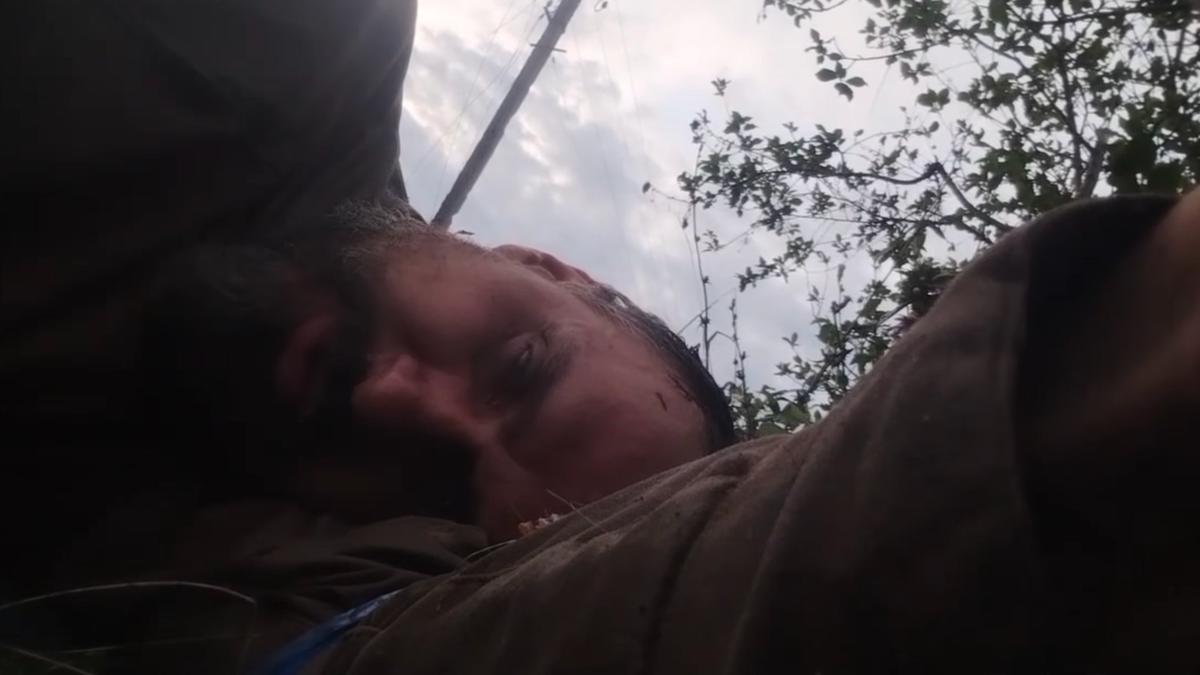 Сенцов записал видео сразу после получения контузии. Он рассказал, что только что закончился бой за важный для наступления рубеж.