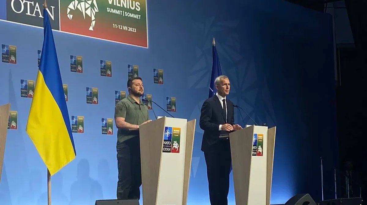 A joint press conference by Ukrainian President Volodymyr Zelensky and NATO Secretary General Jens Stoltenberg has been held within the framework of the 2023 NATO Summit in Vilnius, Novaya Gazeta Europe’s correspondent reports.