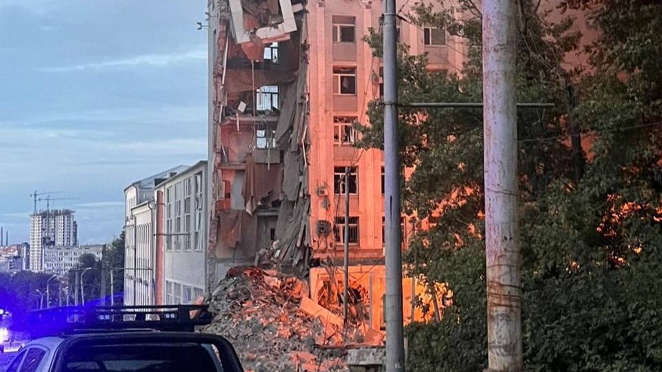 По информации украинского издания «Бабель», в здание попала российская ракета «Искандер», повреждены верхние этажи.