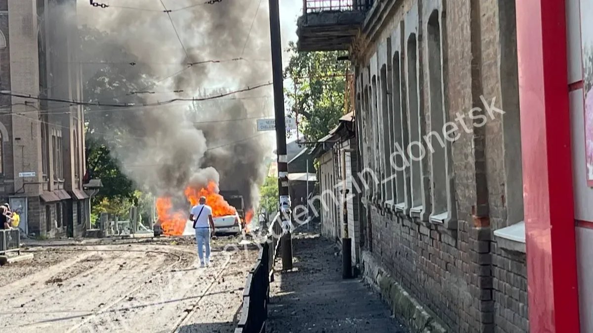 RIA Novosti writes that the shelling caused a bus to catch fire and damaged two cars.