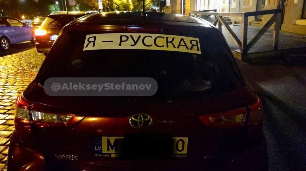 Так латвийские полицейские отреагировали на опубликованную в твиттере фотографию машины с латвийскими номерами и надписью «Я — русская».