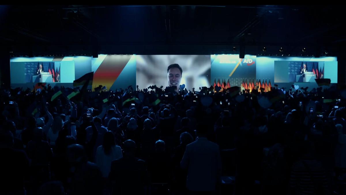 Мероприятие проходило накануне в городе Галле, всего на нем собралось около 4,5 тысячи человек. Организаторы подключили бизнесмена по видеосвязи — тот начал свое выступление со слов: «Если вы меня слышите, поднимите руки вверх или что-то такое», вероятно, отсылая к своему жесту на инаугурации Дональда Трампа, напоминающий нацистское приветствие.