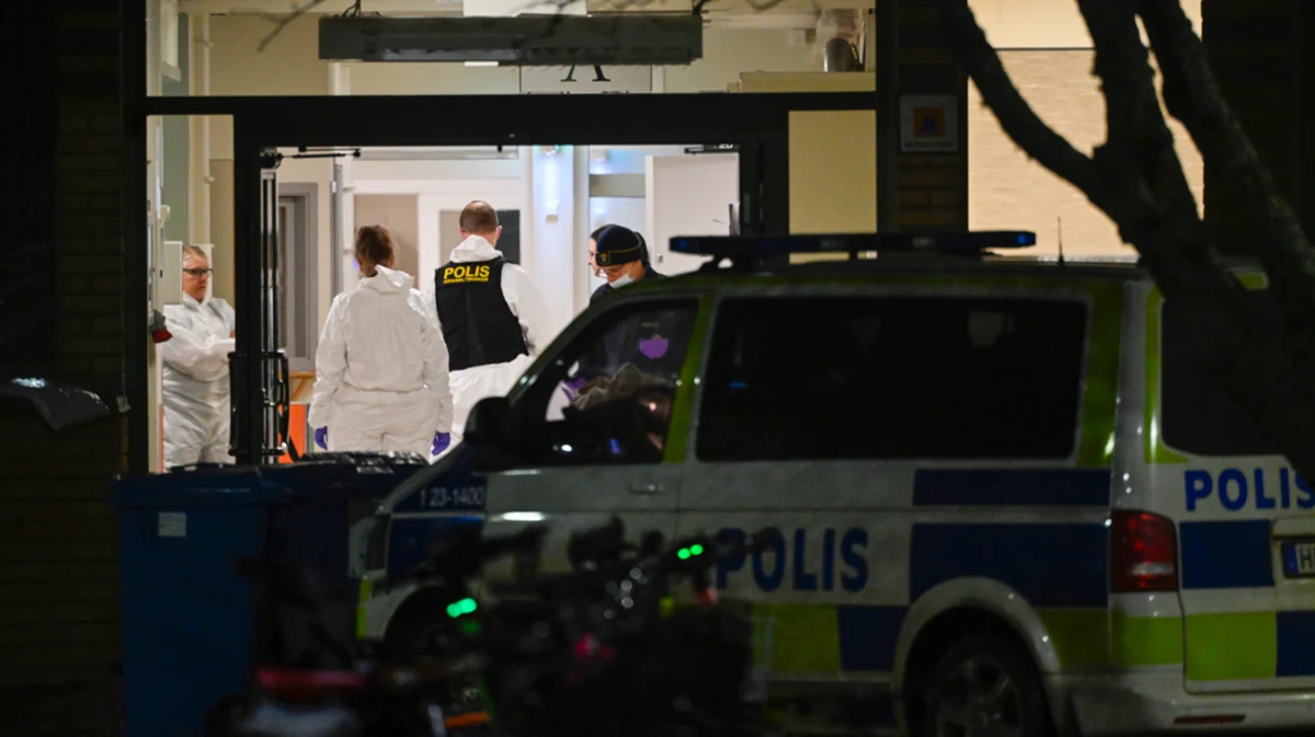 Полицейские на месте стрельбы в образовательном центре, Эребру, Швеция, 4 февраля 2025 года. Фото: Pontus Lundahl / EPA