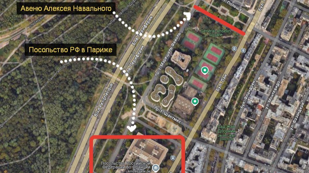 «Алексей Навальный отмечен парижскими властями за свою роль в противостоянии диктатуре Владимира Путина. Городские власти попросят депутатов муниципального совета назвать в его честь нечетную сторону Avenue de Pologne», — подчеркнули в мэрии Парижа.