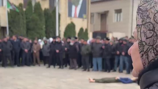 School-age children as young as 15 were forced to attend the event, news outlet Caucasian Knot reported, citing a local teacher who gave her name solely as Amina, who said several women fainted after seeing the body, while some attempted to leave the square but were not allowed to do so. “Why were we forced to bring our children here? So they can look at the body of a teenager their age, wrapped in a bloody rag?” she asked.