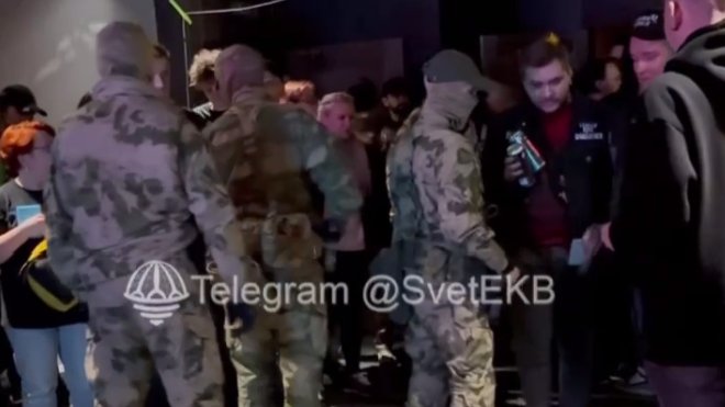 Организаторов попросили выключить свет, посетителей поставили к стене и проверили их документы. По данным местного телеграм-канала «Свет Екатеринбург», силовики осмотрели татуировки пришедших, спрашивали об отношении к войне в Украине и «леворадикальным движениям», а также проверяли переписку в мессенджерах.