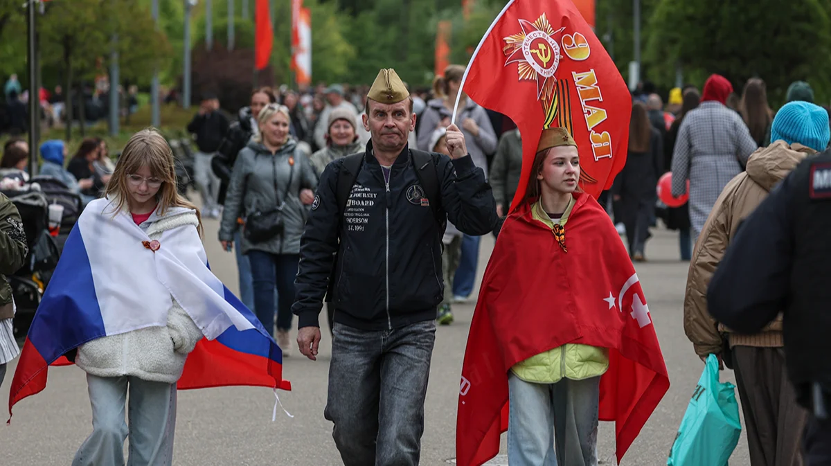 Выхожу из поезда на «Парке Победы». На эскалаторе много людей в пилотках, военной форме или просто с георгиевской ленточкой. В углу вестибюля, перед экраном, где обычно крутят рекламу мэрии Москвы, вижу небольшую толпу. Сегодня тут без звука транслируют парад с Красной площади: по брусчатке катятся танки.