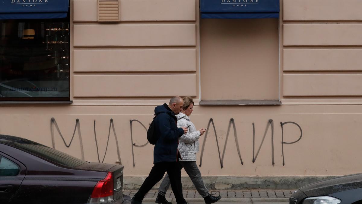 A 42-year-old Moscow resident who was detained on Saturday has been charged with vandalism for spray-painting the Soviet-era slogan “Peace to the World” in various public spaces in St. Petersburg, local outlet Konkretno.ru reported on Sunday.
