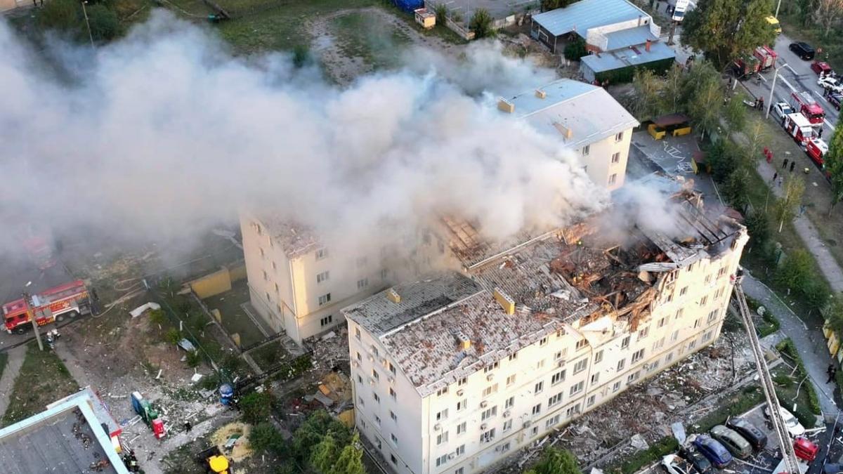 Four Geran-2 drones struck the building, causing apartments on the first, third and fifth floors to catch fire. Several ceilings in the building also collapsed, and five other nearby residential buildings were also damaged, Synyehubov added.