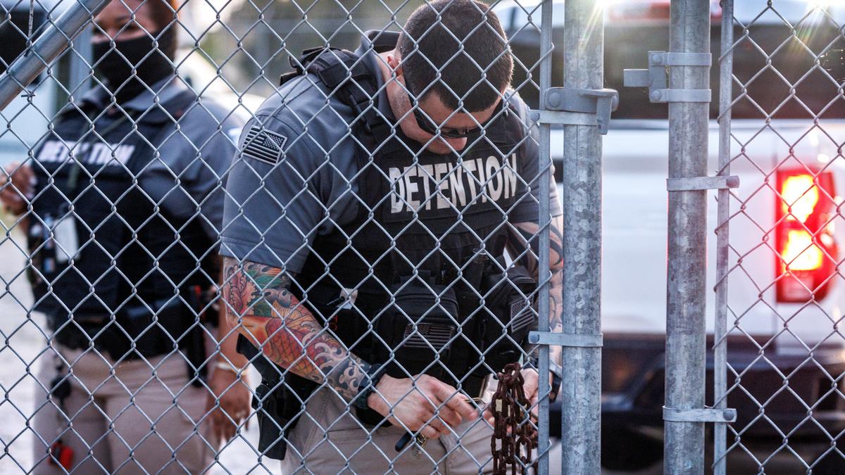 An officer closes an immigration detention centre’s gate in Miami, Florida, USA, 24 May 2025. Photo: EPA/CRISTOBAL HERRERA-ULASHKEVICH