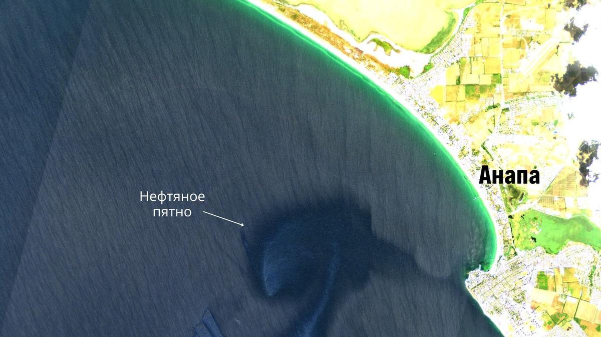 Согласно спутниковым снимкам, которые изучили эксперты, изначально площадь нефтяного пятна составляла 50 кв. м. В течение следующих трех дней пятно прошло от Новороссийска вдоль побережья Анапы и приблизилось к Керченскому проливу.