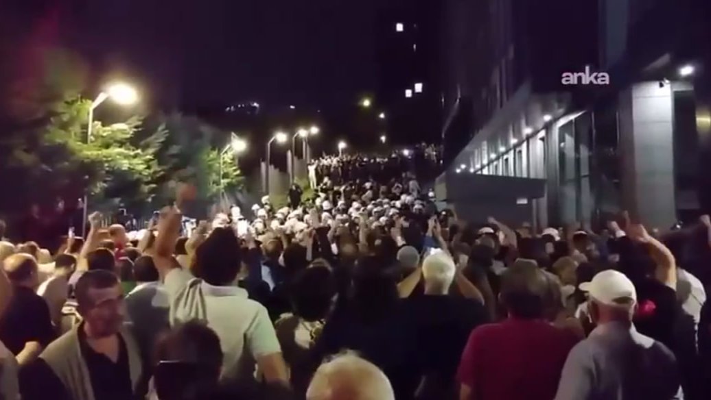 Протестующие скандировали «Эрдоган — диктатор!» и «Мы солдаты Мустафы Кемаля!». Один раз сторонникам оппозиции удалось прорваться внутрь здания, однако силовики вытеснили их оттуда. Произошло несколько столкновений с полицией.