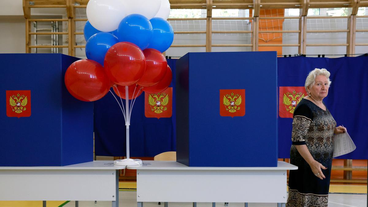 A woman votes in St. Petersburg’s gubernatorial elections, 6 September 2024. Photo: EPA / Anatoly Maltsev