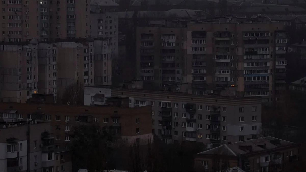 Вид на жилые дома в Киеве во время очередного отключения электричества, вызванного российскими обстрелами, Украина, 8 ноября 2025 года. Фото: Gleb Garanich / Reuters / Scanpix / LETA