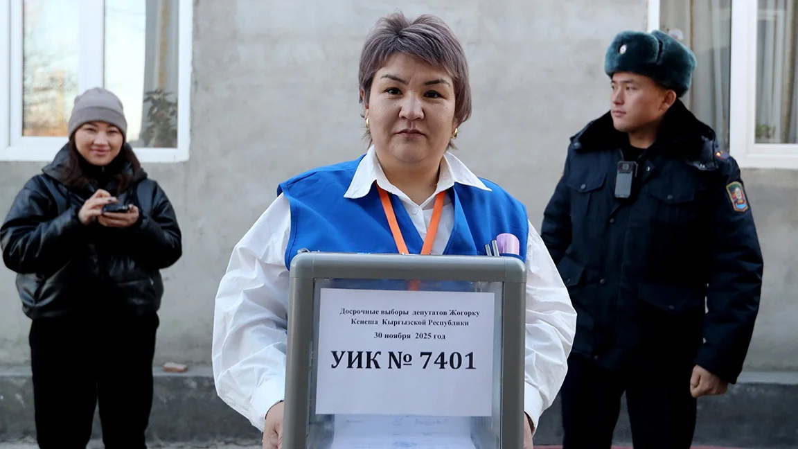 Член избирательной комиссии во время досрочных парламентских выборов в селе Кара-Джыгач, недалеко от Бишкека, Кыргызстан, 29 ноября 2025 года. Фото: Игорь Коваленко / EPA