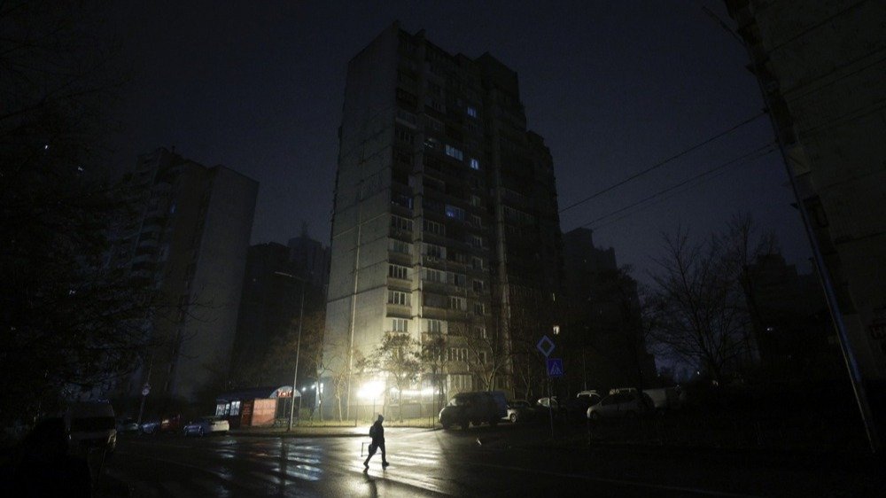 A person crosses the street during a power outage in Kyiv, Ukraine, 29 November 2024. Photo: EPA/SERGEY DOLZHENKO
