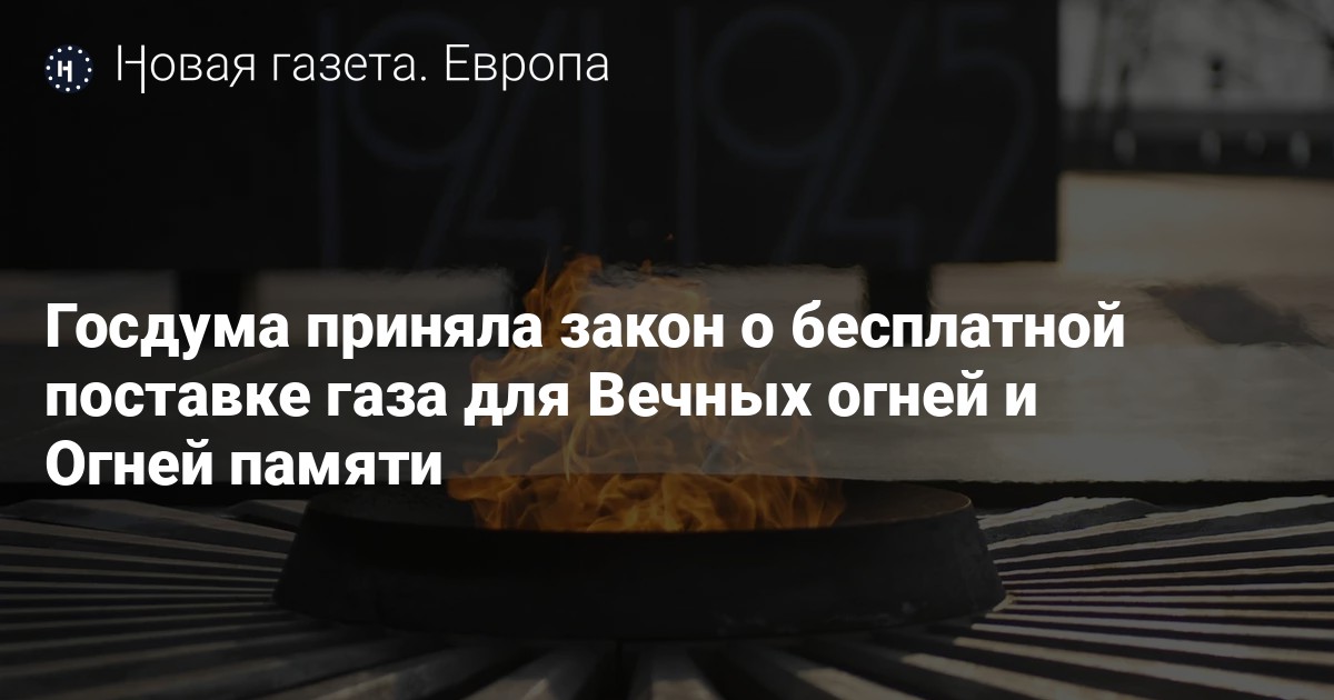 Как говорится в законопроекте, меры позволят «на безвозмездной основе» обеспечить бесперебойную работу Вечных огней и Огней памяти на воинских захоронениях и мемориальных сооружениях, находящихся вне воинских захоронений, которые включены в реестр Минобороны России.