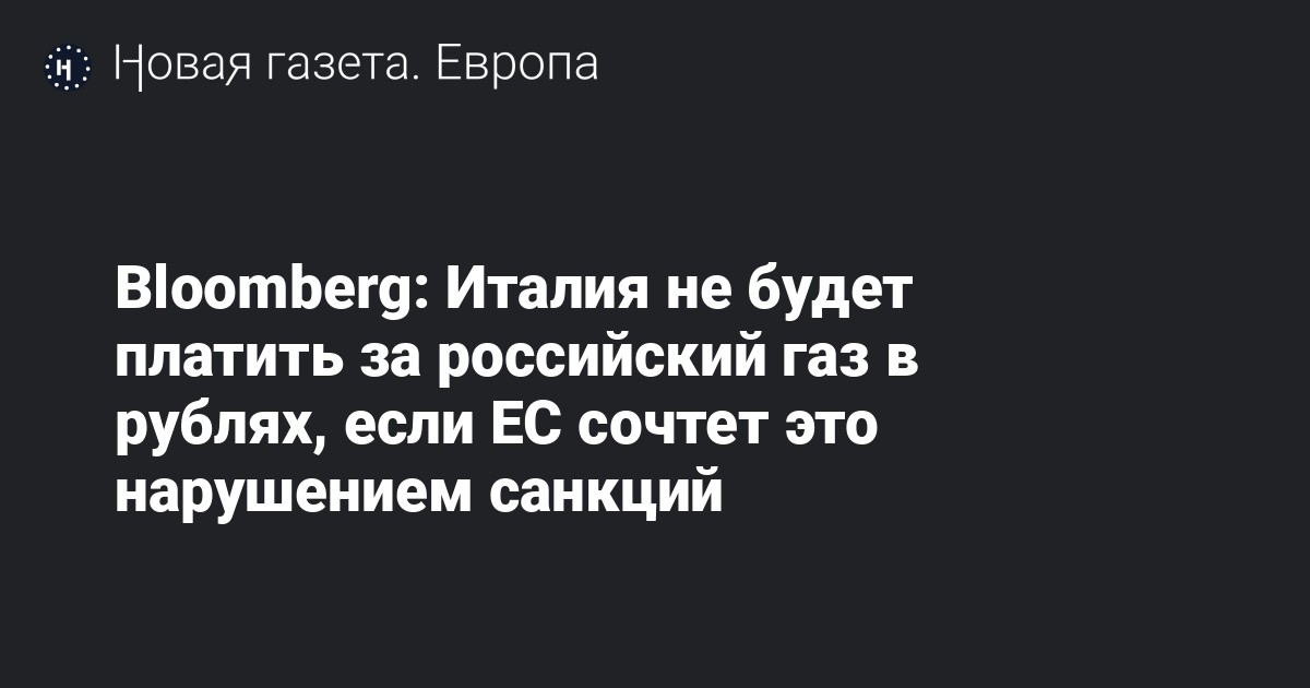 Италия откажется платить за российский газ в рублях, если Евросоюз сочтет это нарушением санкций, сообщает Bloomberg со ссылкой на источники.