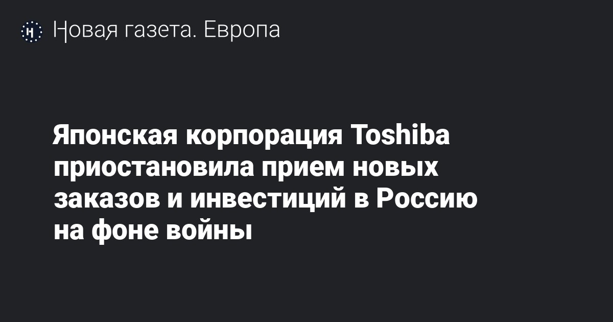 Японская корпорация Toshiba приостанавливает прием новых заказов и инвестиций в Россию на фоне вторжения РФ в Украину. Toshiba «очень обеспокоена ситуацией в Украине и выражает соболезнования пострадавшим», — говорится в пресс-релизе компании.